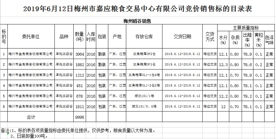 交易時(shí)間和地點(diǎn):2019年6月12日(星期三)上午10時(shí)。廣東省梅州市彬芳大道南161號(hào)梅州市糧食交易中心3樓。
