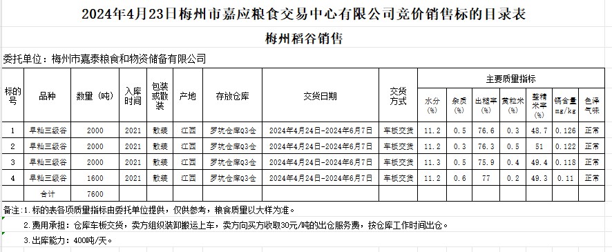 受客戶委托,梅州市嘉應(yīng)糧食交易中心有限公司定于2024年4月23日(星期二)舉辦糧食競價(jià)交易會(huì)。梅州市嘉泰糧食和物資儲(chǔ)備有限公司擬銷售2021年產(chǎn)早秈稻7600噸。